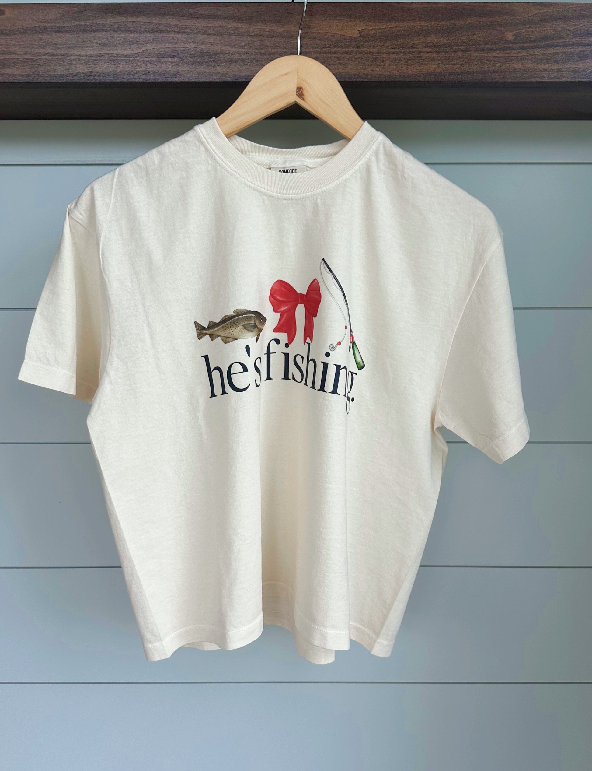 He's Fishing coquette design is just too cute for those that have an avid fisherman in their life!
