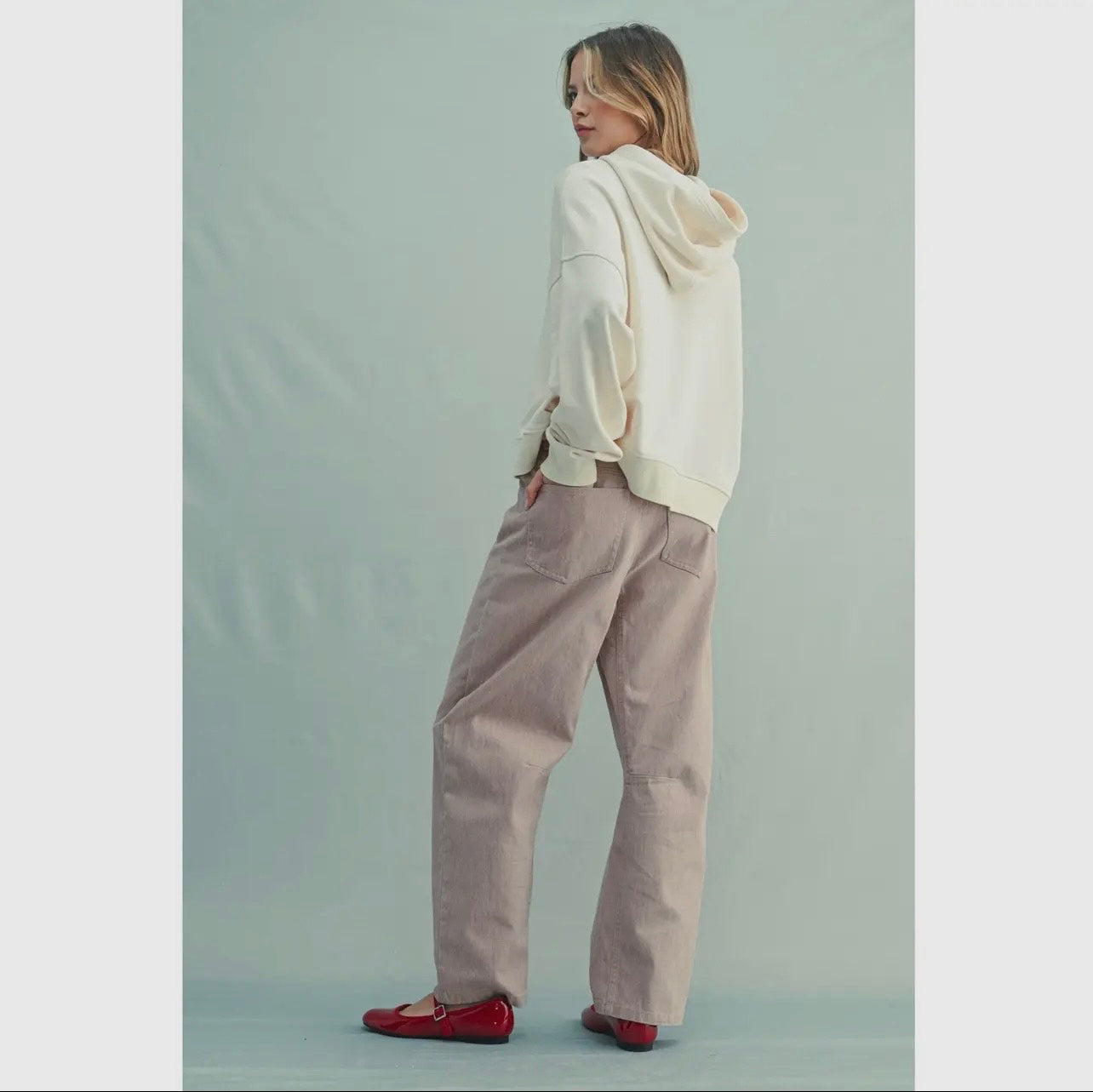 Meet the hoodie you’ll live in this season. It has a relaxed fit made from French Terry in gorgeous ecru color, this piece is the definition of cozy luxury. The finishing touch? A tiny, vibrant red embroidered bow that adds a subtle, charming nod to the holidays.